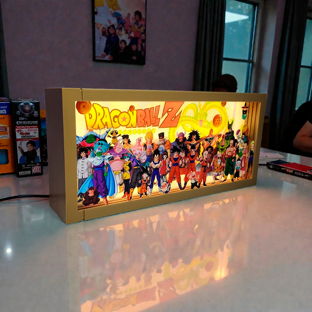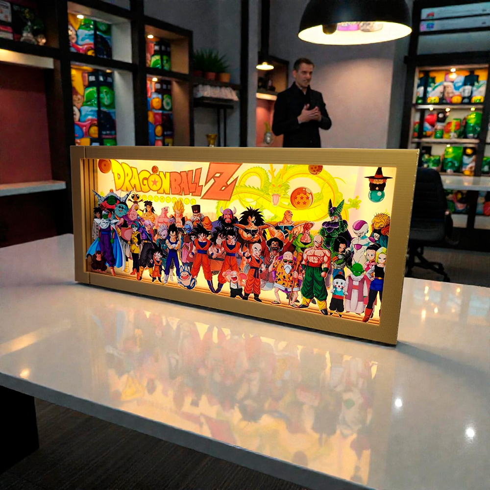 Revive la energía y la aventura de siempre con esta Caja Lumínica de Dragon Ball. Su diseño en capas de profundidad crea un atractivo efecto 3D que da vida a los personajes clásicos de la saga, mientras la iluminación LED resalta cada detalle con un brillo vibrante y lleno de energía.