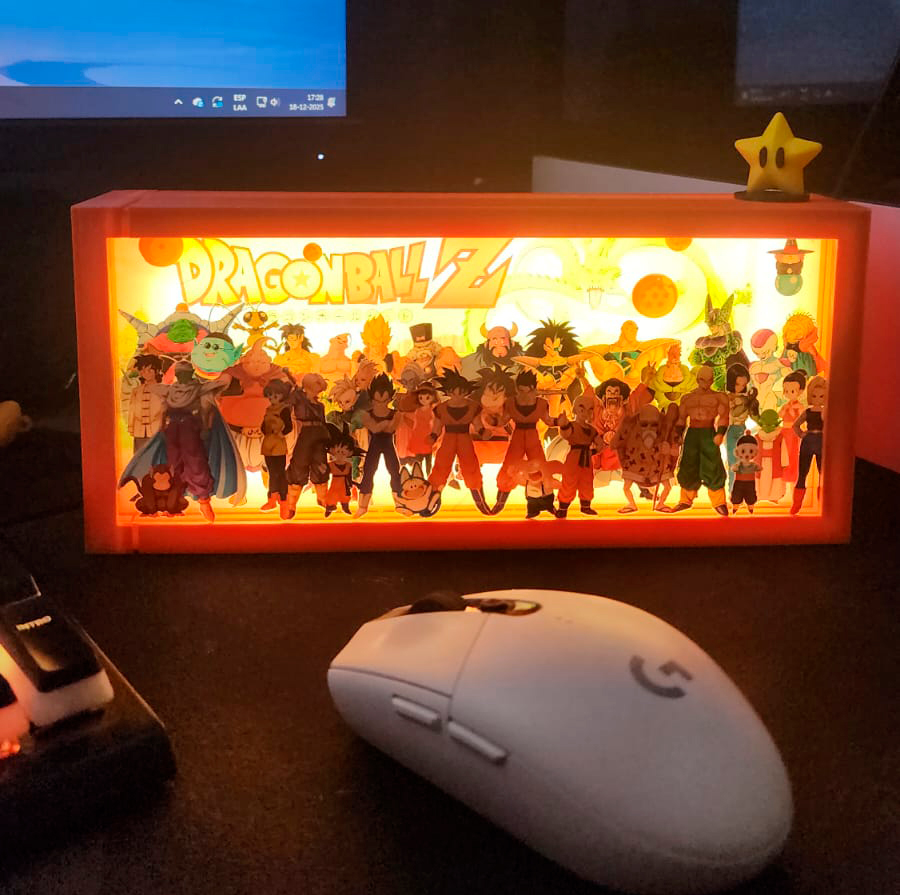 Ideal para escritorios, repisas o espacios gamer, esta caja no solo ilumina, sino que transmite nostalgia, acción y espíritu de aventura. Un complemento decorativo perfecto para fans que crecieron junto a Gokú y sus amigos 🐉✨