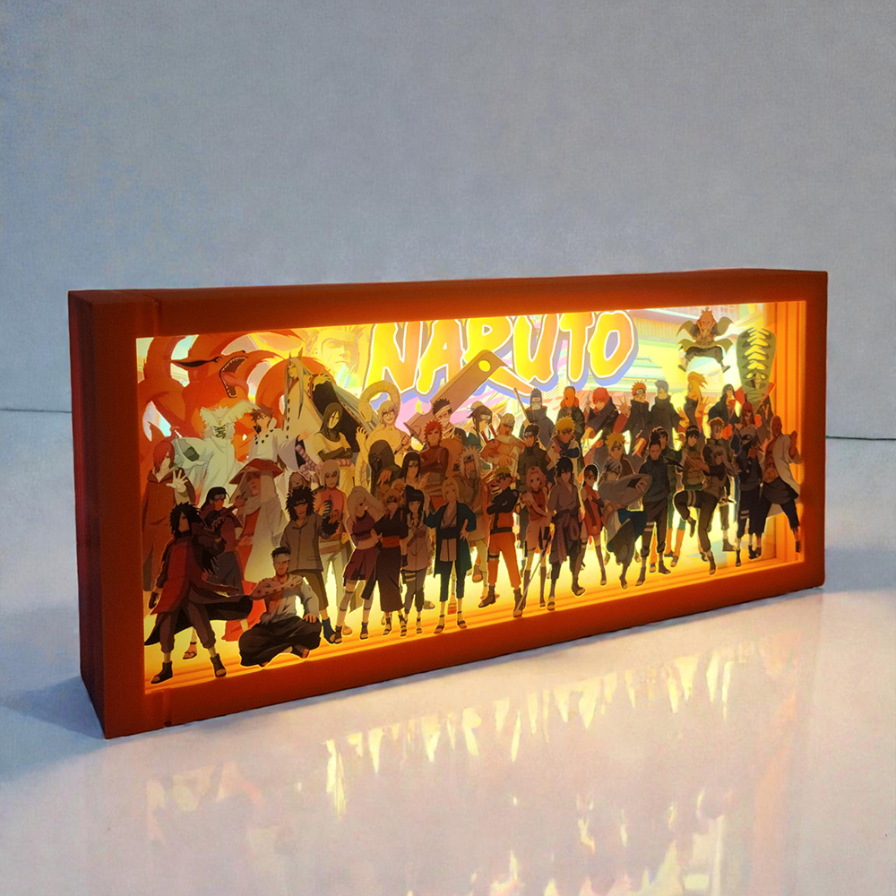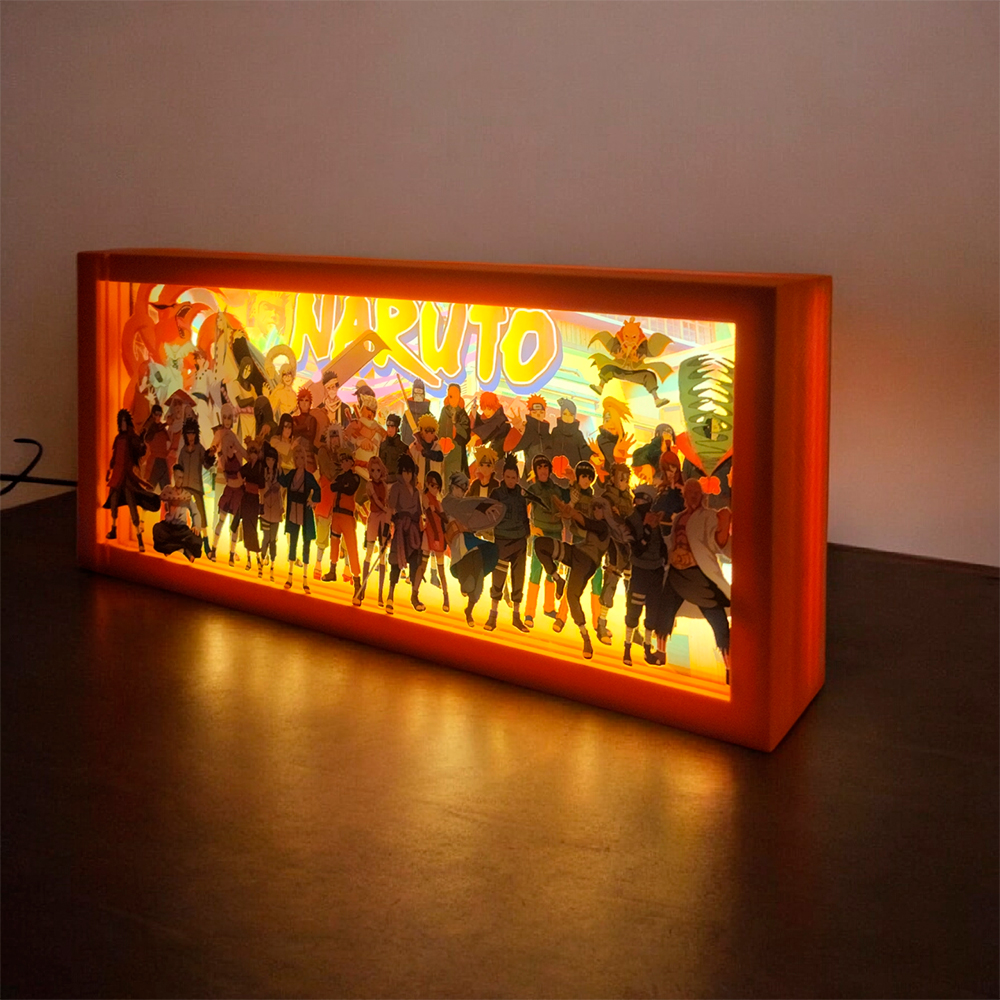 Lleva el espíritu ninja a tu espacio con esta Caja Lumínica de Naruto. Su diseño en capas de profundidad crea un efecto 3D dinámico que da vida a los personajes, mientras la iluminación LED resalta cada detalle con un brillo envolvente y lleno de energía.