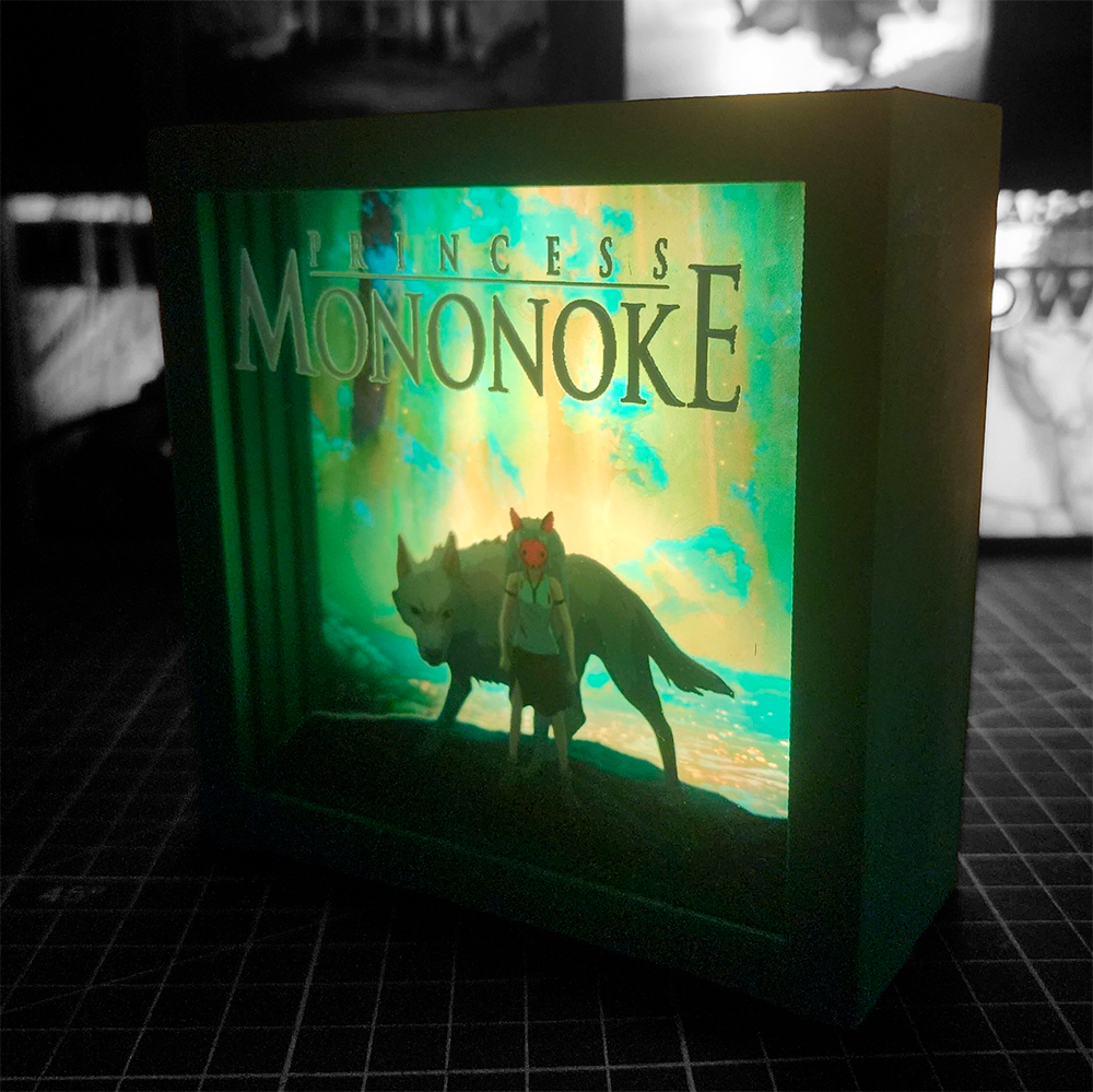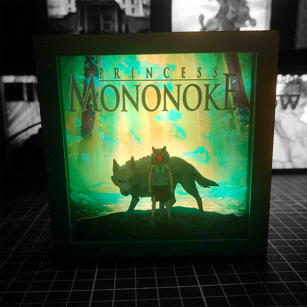 Adéntrate en el mundo místico de Princess Mononoke, una obra maestra del animé que mezcla naturaleza, espíritu y conflicto humano. Esta caja lumínica captura su esencia en un diseño de 3 niveles de profundidad, creando un efecto visual envolvente donde los personajes y el bosque cobran vida con una presencia casi mágica.